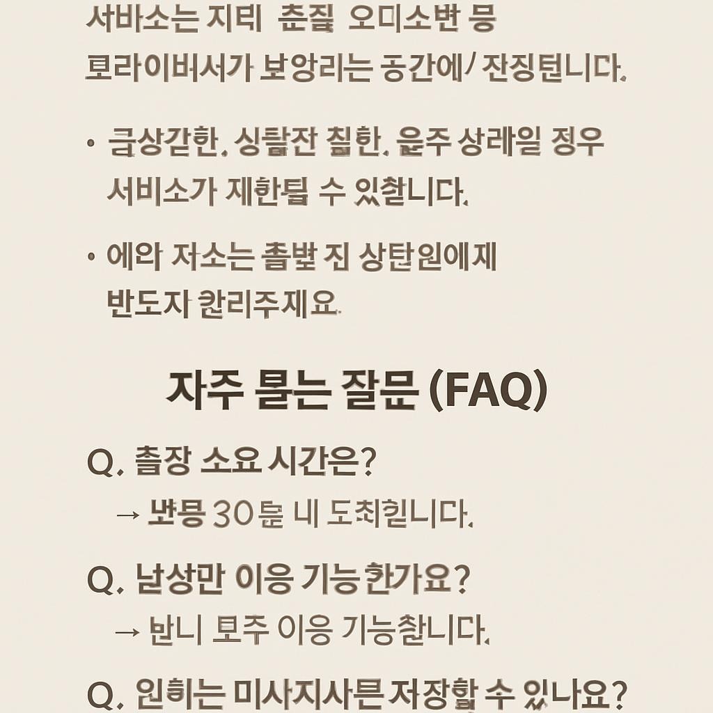 예약 취소는 출발 전 상담원에게 반드시 알려주세요.